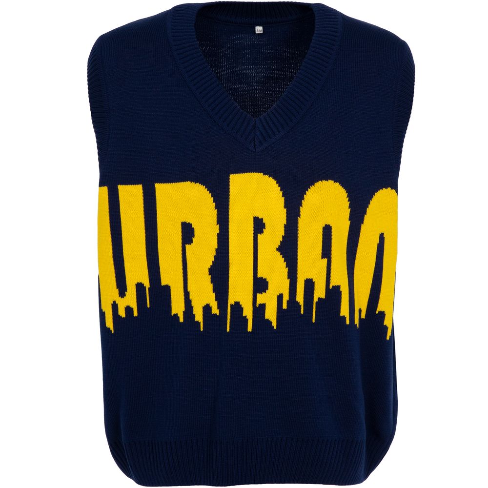 Модель: жилет жаккардовой вязки, 2–3 цвета нитей, спущенное плечо, крупная петля. На бейках горловины и проймы возможна отделка в виде контрастных полос (не более 3-х цветов).