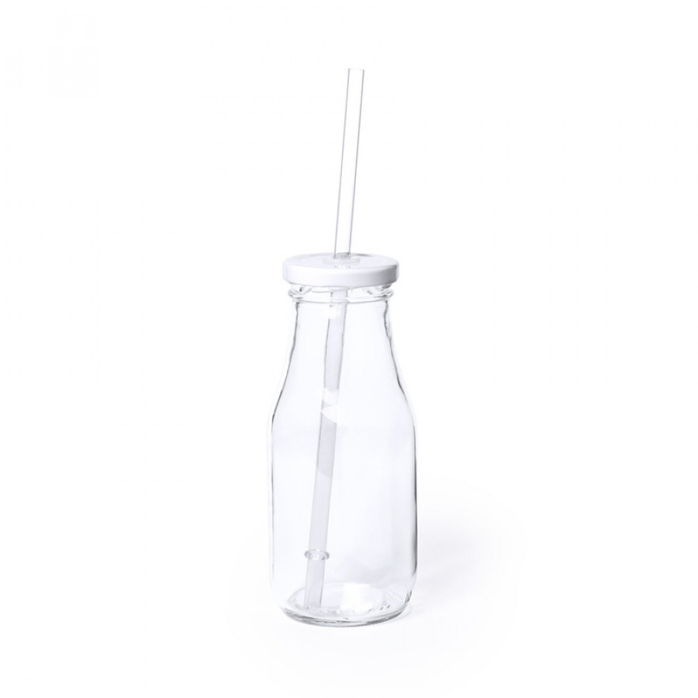 Параметры: Бутылка ABALON с трубочкой, 320 мл, стекло, прозрачный, белый