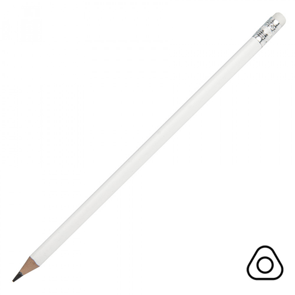 Карандаш чернографитный трехгранный TRINITY с ластиком, пластиковый, HB, белый