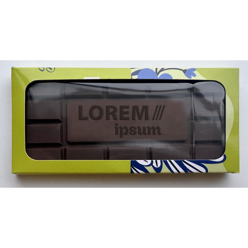 Окошко позволяет увидеть шоколад, не открывая коробку. Полноцветная печать упаковки выполняется по вашему дизайн-макету.