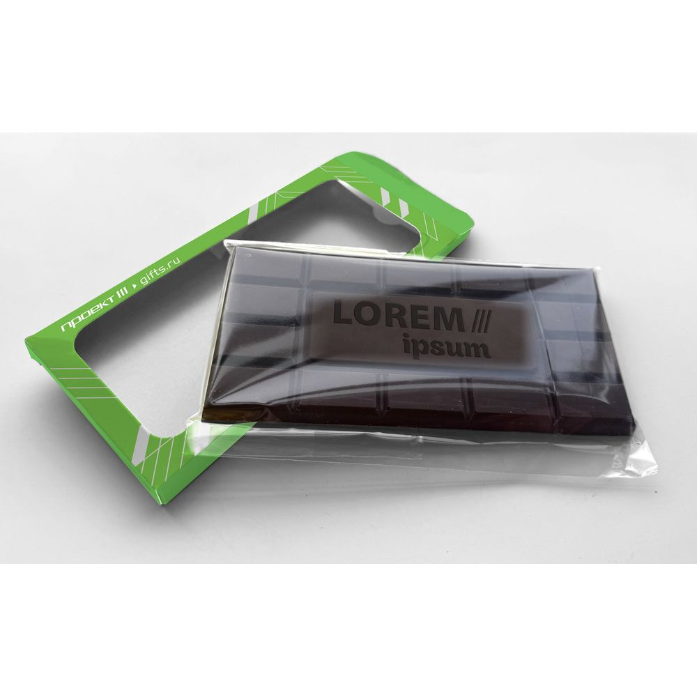 Барельефный шоколад с логотипом в индивидуальной упаковке с окошком.
