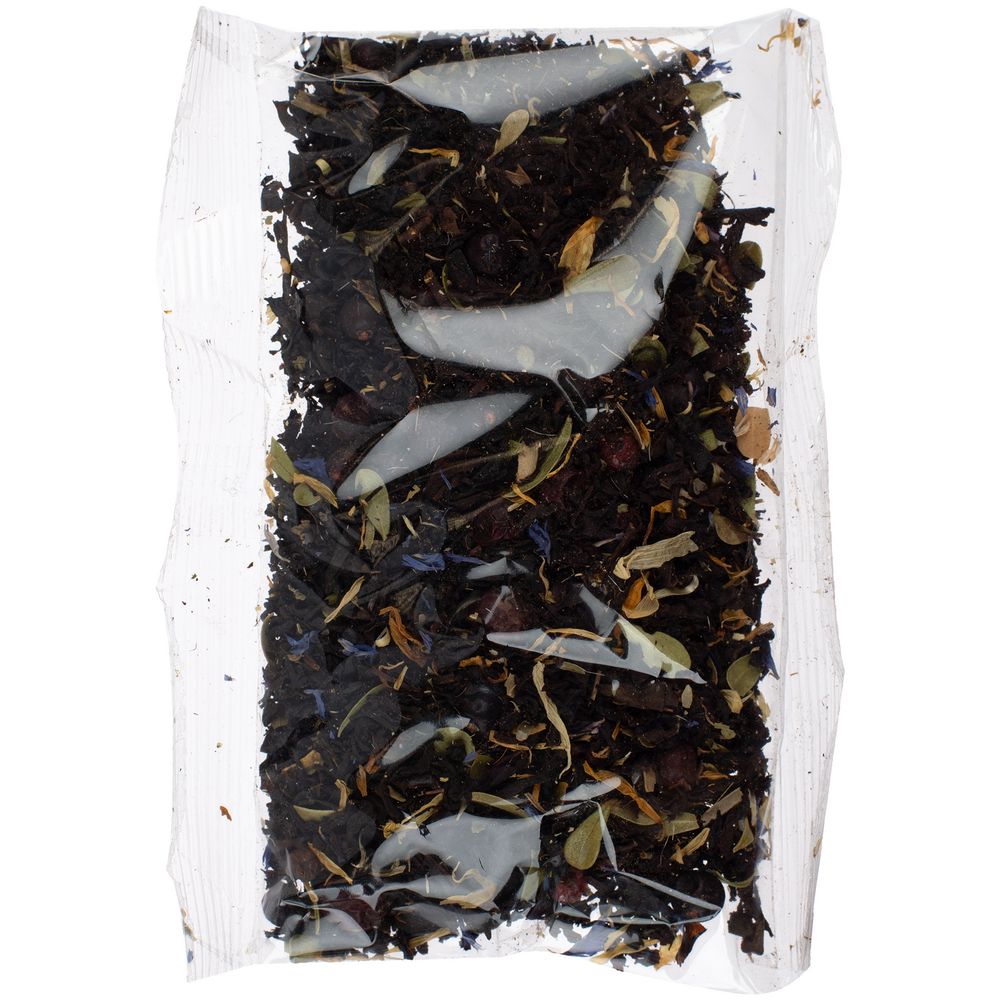 Крупнолистовой индийский чай с ягодами клюквы, смородины и можжевельника, брусничным листом и травами погружает в атмосферу таежного леса, дарит приятное расслабление и создает волшебное настроение.Состав: чай черный крупнолистовой, боярышник, ягоды клюквы, плоды можжевельника, лист брусники, мята, лепестки календулы, лист оливы, лепестки василька, ягоды смородины, пищевой ароматизатор «Черная смородина».