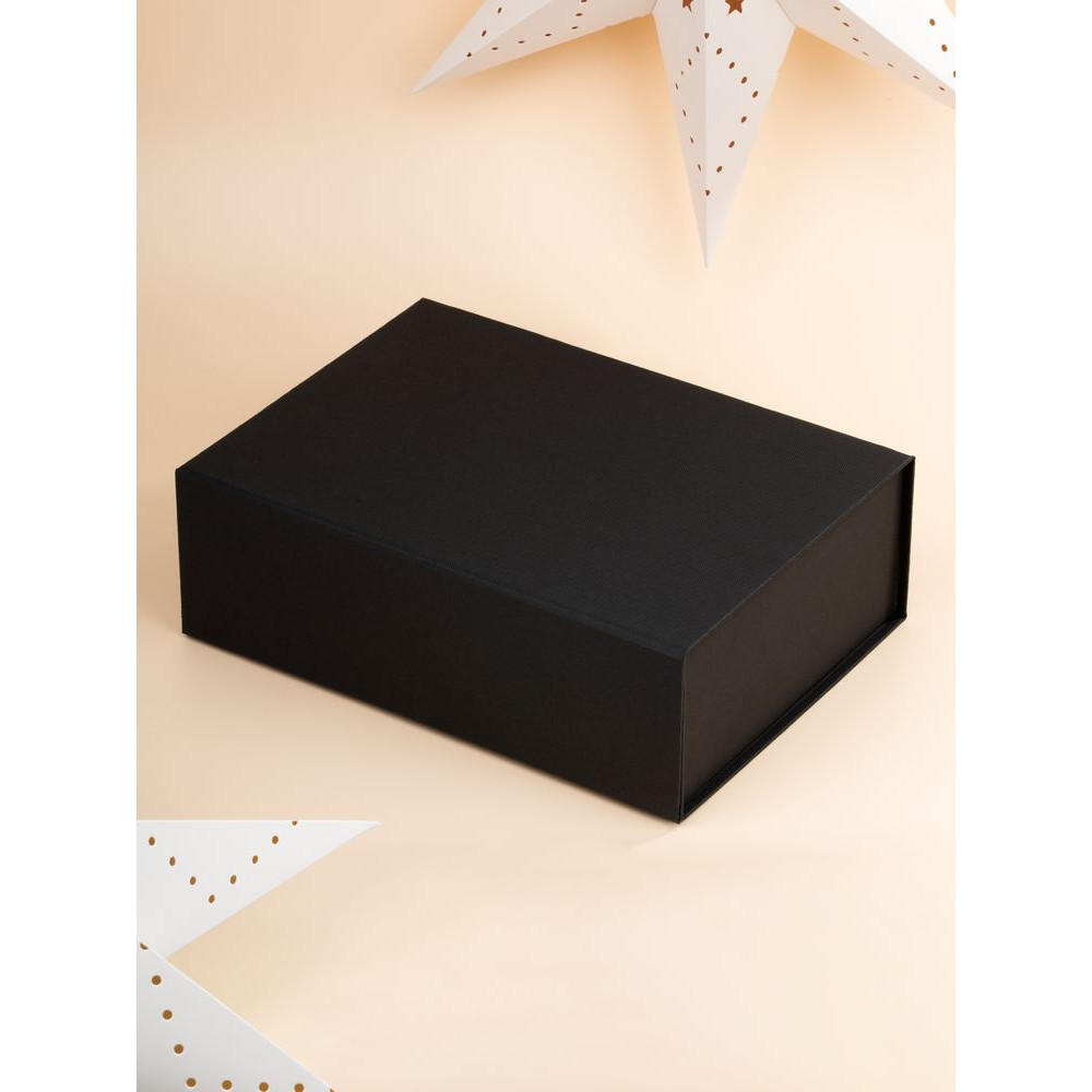 Коробка из переплетного картона, кашированного тисненой тонированной в массе бумагой, с крышкой на магните.