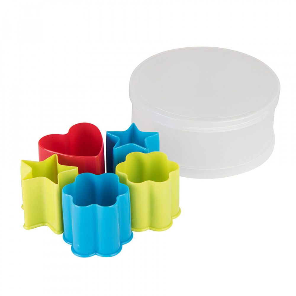Печь печенье и украшать его вместе с детьми – что может быть лучше? Яркие цветные формочки в пластиковой коробке помогут создать вкусные звездочки, цветочки и сердечки.