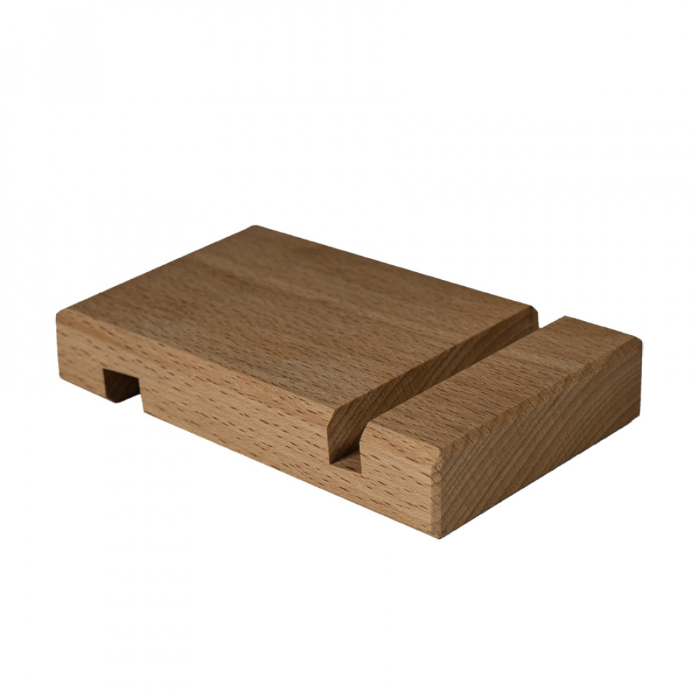 Подставка для смартфона, две разные выемки позволяют установить в держатель смартфон как в плотном бронечехле, так и без него, при этом смартфон будет хорошо зафиксирован, выполнениз премиум материала бук.