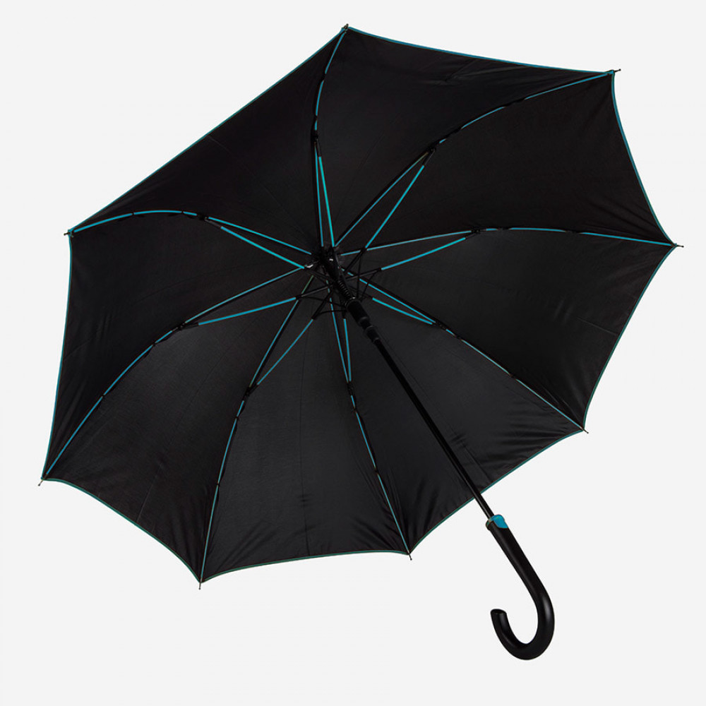 Параметры: Зонт-трость "Back to black", полуавтомат, 100% полиэстер, черный с голубым