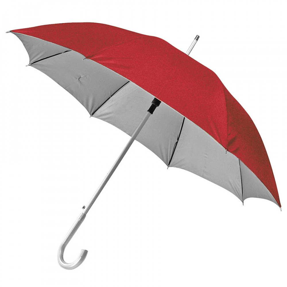 Параметры: Зонт-трость с пластиковой ручкой "под алюминий" "Silver", полуавтомат; красный с серебром; D=103 cм