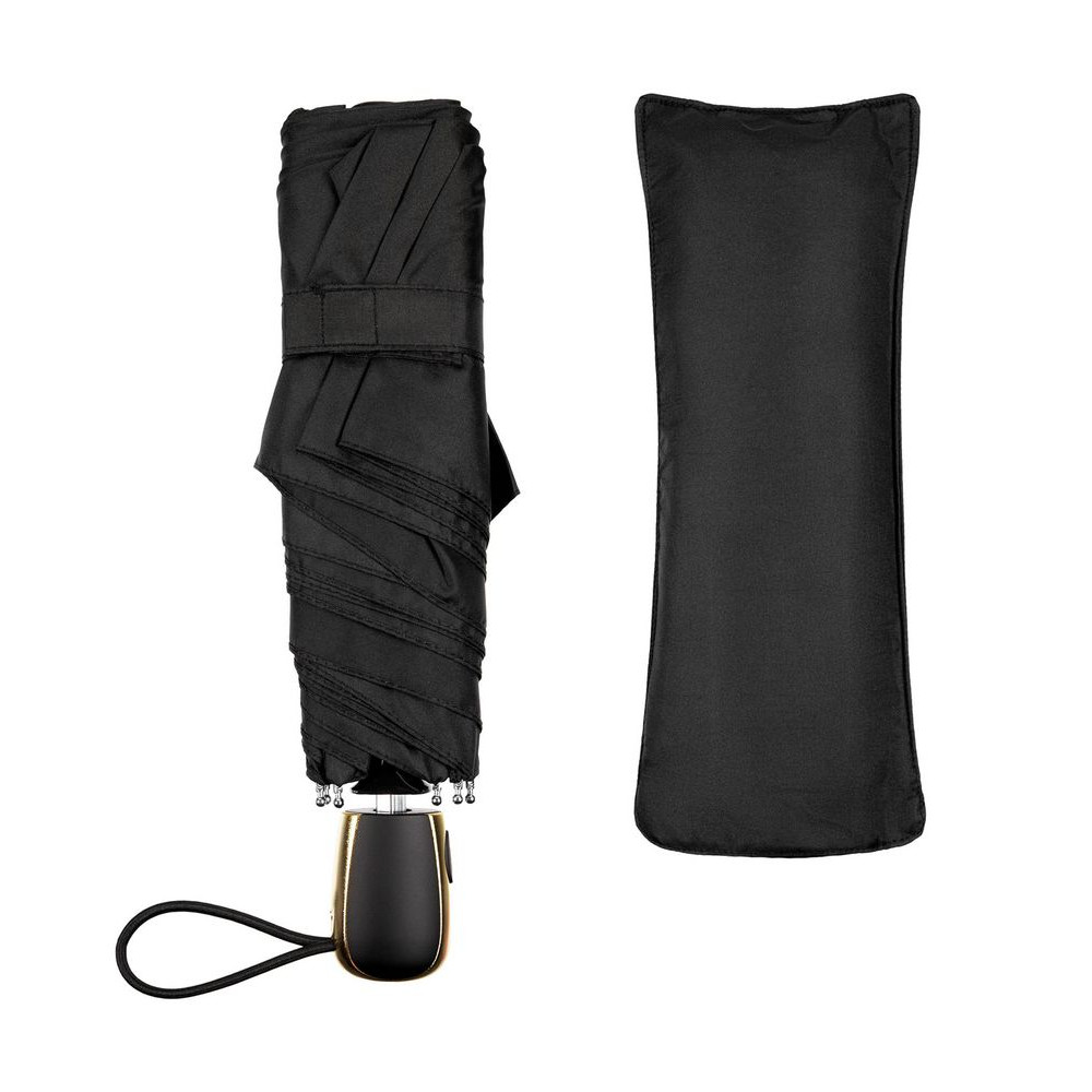 - Пластиковая ручка с золотистой вставкой и кнопкой для автоматического открывания зонта