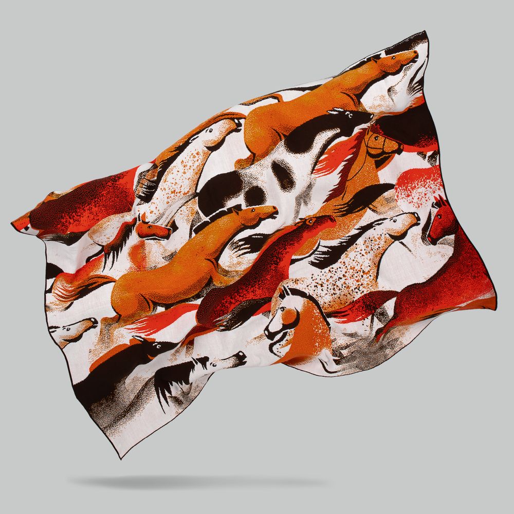 Плед «Огнегривые» масштабно воплощает символ 2026 года — Красную Огненную Лошадь. Табун лошадей, словно охваченных пламенем или заревом, в едином порыве смело несется вперед — навстречу новому, к общей манящей цели, мерно отбивая ритм и наслаждаясь свободой.