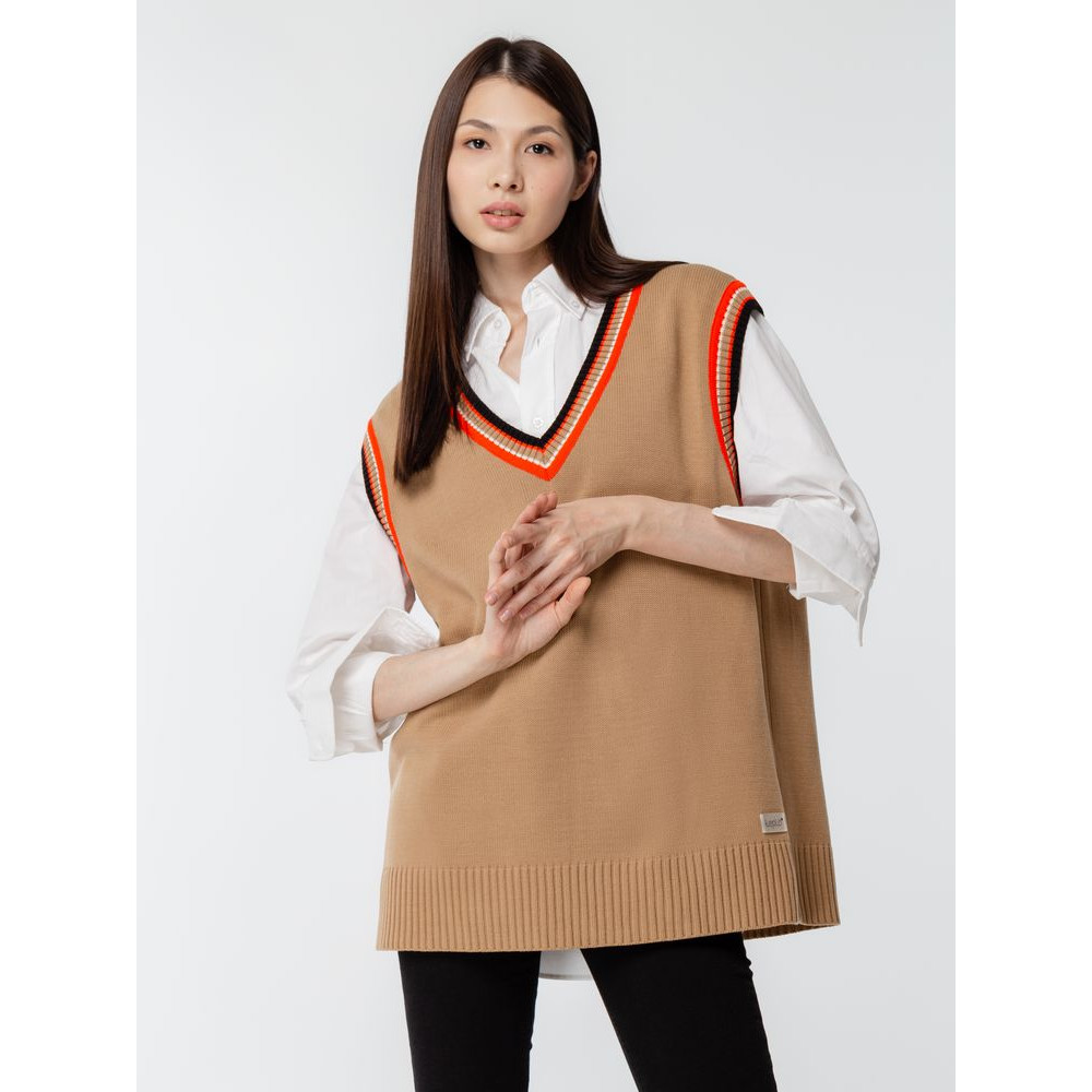 Оверсайз жилет с V-образным вырезом и цветной отделкой.